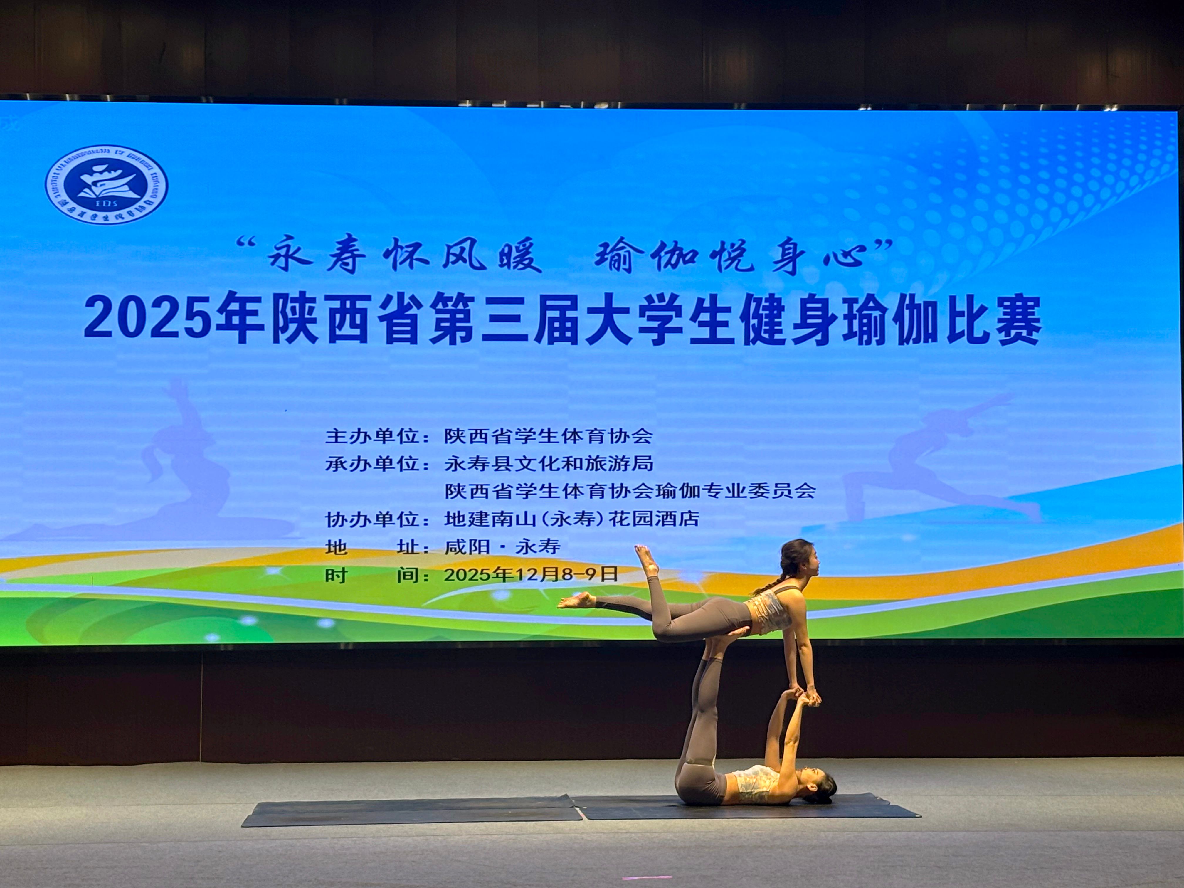 12月8日-9日,2025年陕西省第三届大学生健身瑜伽比赛在咸阳市永寿县成功举办。本届比赛由陕西省学生体育协会主办,永寿县文化和旅游局、陕西省学生体育协会瑜伽专业委员会承办,吸引来自全省19所高校的210余人参与比赛。