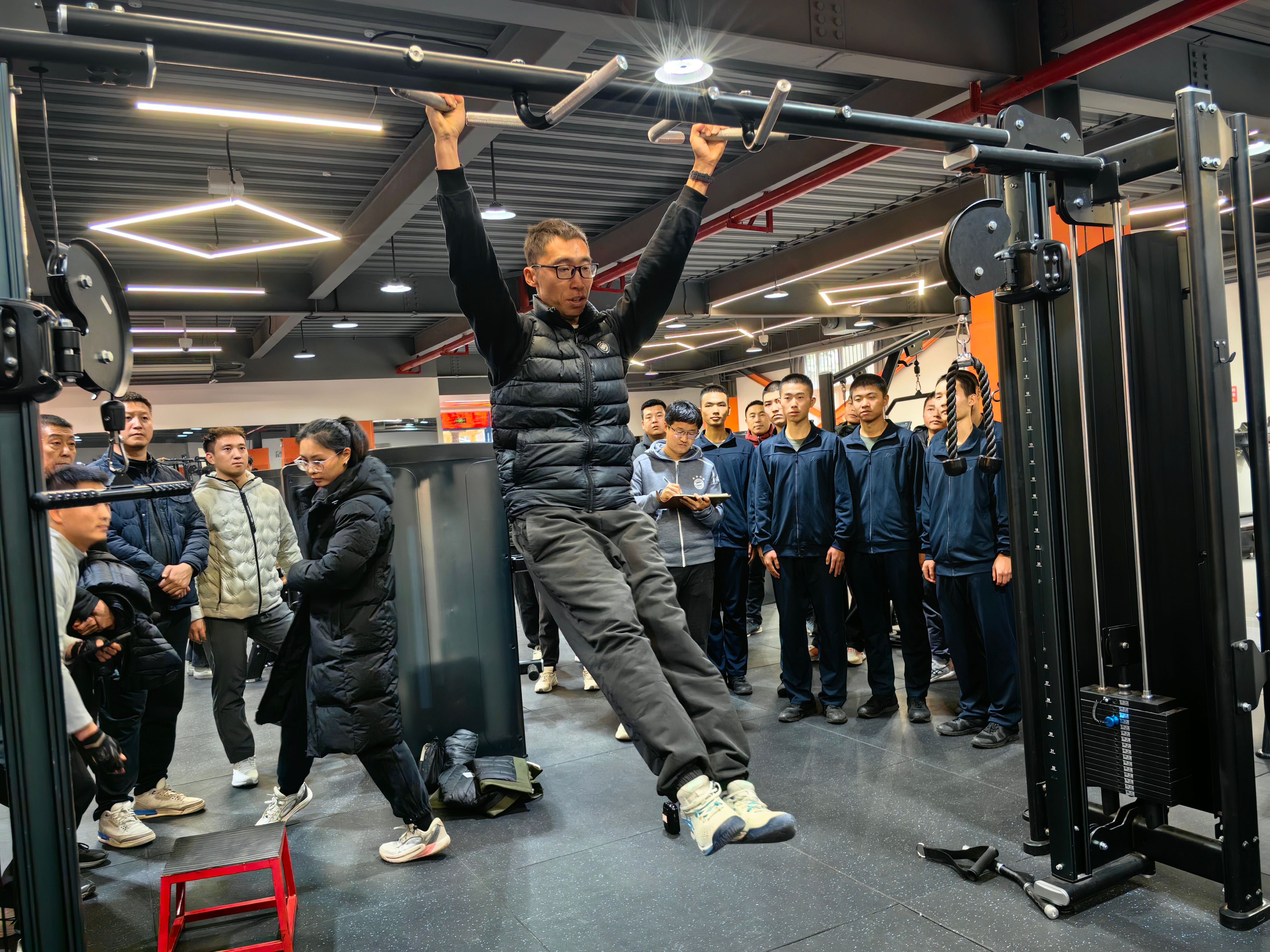 军事学院学生代表先后分享了在引体向上练习中如何实现从零到一、从不及格到及格、从及格到优秀的进阶历程,以及如何制定个人训练计划以突破瓶颈的经验。体育部教师南腾、王馨玮、王力尧、徐新分别基于解剖原理、离心收缩、拮抗运动、抓握方法,以及握力训练——“农夫行走”、“吊杠”等练习项目,进行示范与教学经验分享。现场师生互动踊跃,气氛热烈,也为后续开展引体向上竞赛活动奠定了基础。